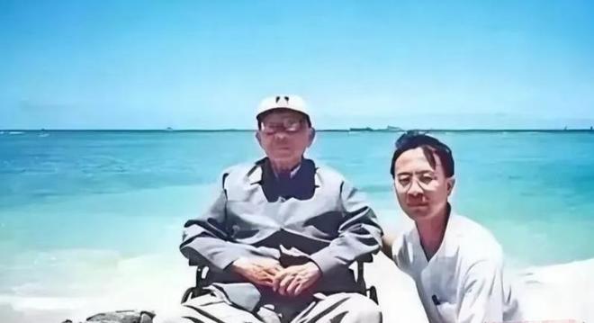 除了记者以外昔日好友的家人也前往美国探望了他,这张照片就是2000年张学良和杨虎城将军的孙儿杨瀚在夏威夷海边留下的合影。