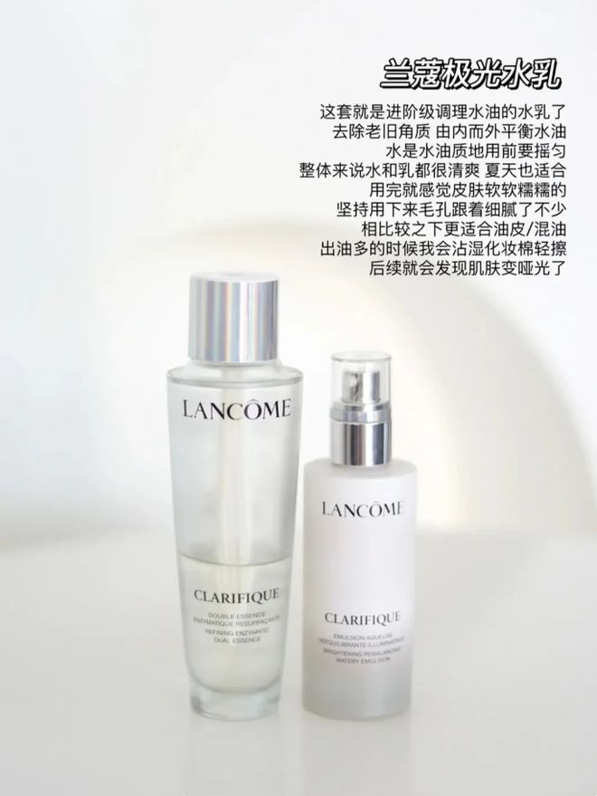 化妆桌上有它们、心里就踏实,精粹水已经数不清回购多少瓶了,摸起来是有点厚重的精华水质地,但上脸真的特好吸收,不油不腻,乳液质地轻薄、同时兼具保湿舒缓,清爽还温和,涂到脸上完全没负担。