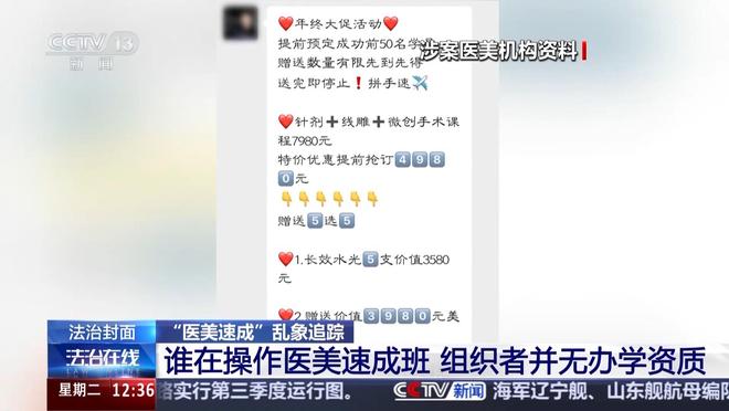 通过三天培训就能让“零基础”的学员摇身一变成为“医美从业者”,然而,就在节目播出的当天,这家非法举办医美速成班的培训机构在全国8座城市仍然在同时开班授课。