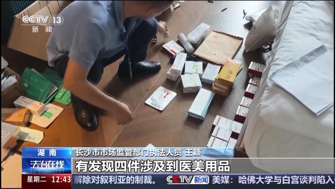 长沙市市场监管部门执法人员 王颖:今天(29日)我们上午接到了上级通知后,立马对这个涉事的酒店,包括组织方,还有这个会场的场地进行了现场突击检查。在他们的房间里面发现四件涉及医美用品,还有医疗器械,部分少量的药品。无法提供合法来源、无法提供组织方合法的资质,我们暂时对涉事物资进行了封存。