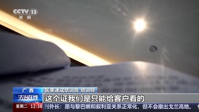 中国法学会消费者权益保护法研究会副秘书长 陈音江:医美本身属于医疗项目,它会直接关系到消费者的生命健康安全,所以经营的主体,包括对从业人员都有严格的职业准入要求。这种违规培训完全没有达到正常从事服务的标准,发个假证就让他去上岗,那他可能就会导致各种事故的发生。